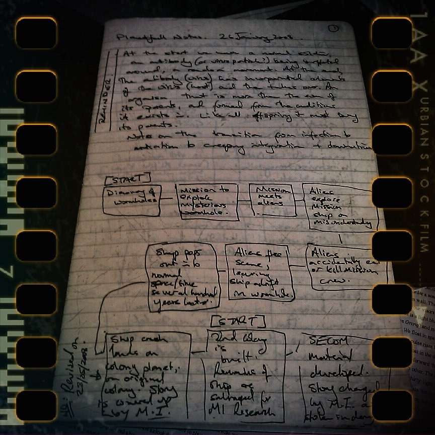 Setting up these early character notes and biographies helped me in understanding how Win would respond to a situation. For example, because he is tied into the moment and the surrounding environment, he is very aware of people’s emotions; it allows him to be a more empathic character. And because of this tendency to empathy and emotional awareness, Win was the first character in the book for whom I developed any conception of family. He is married and has a son (you find this out in the book, and it’s not a spoiler). And because of that, he was my first attempt at creating a character with a tangible emotional centre. My approach was, “If I can get the emotional content of this character right, then I can use the experience to develop the emotional life of the other characters”. I think because of that I formed an emotional attachment to Win, and in planetfall book 1 he’s my joint favourite character (along with Verigua, the Colony’s Artificial Intelligence).