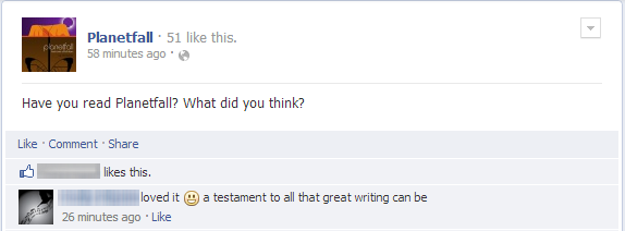 Tonight I put out the call: “Have you read Planetfall? What did you think?”